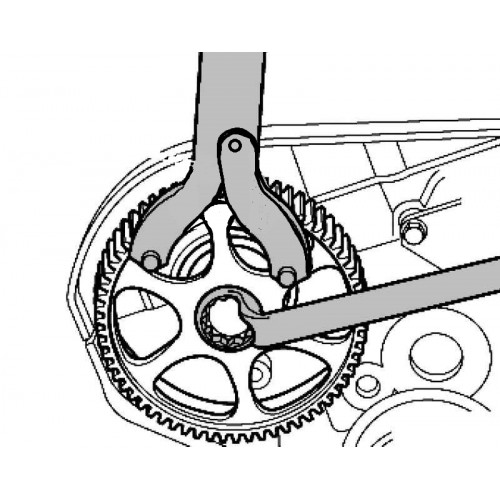 Предназначен для удержания и поворота приводных шкивов и зубчатых колес валов газораспределительного механизма при ремонте и обслуживании двигателей внутреннего сгорания.