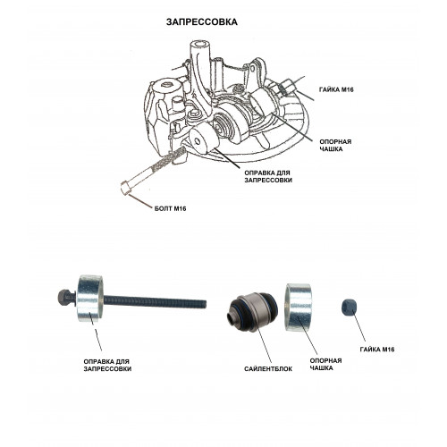 Предназначен для установки и снятия плавающих сайлентблоков задней оси BMW.